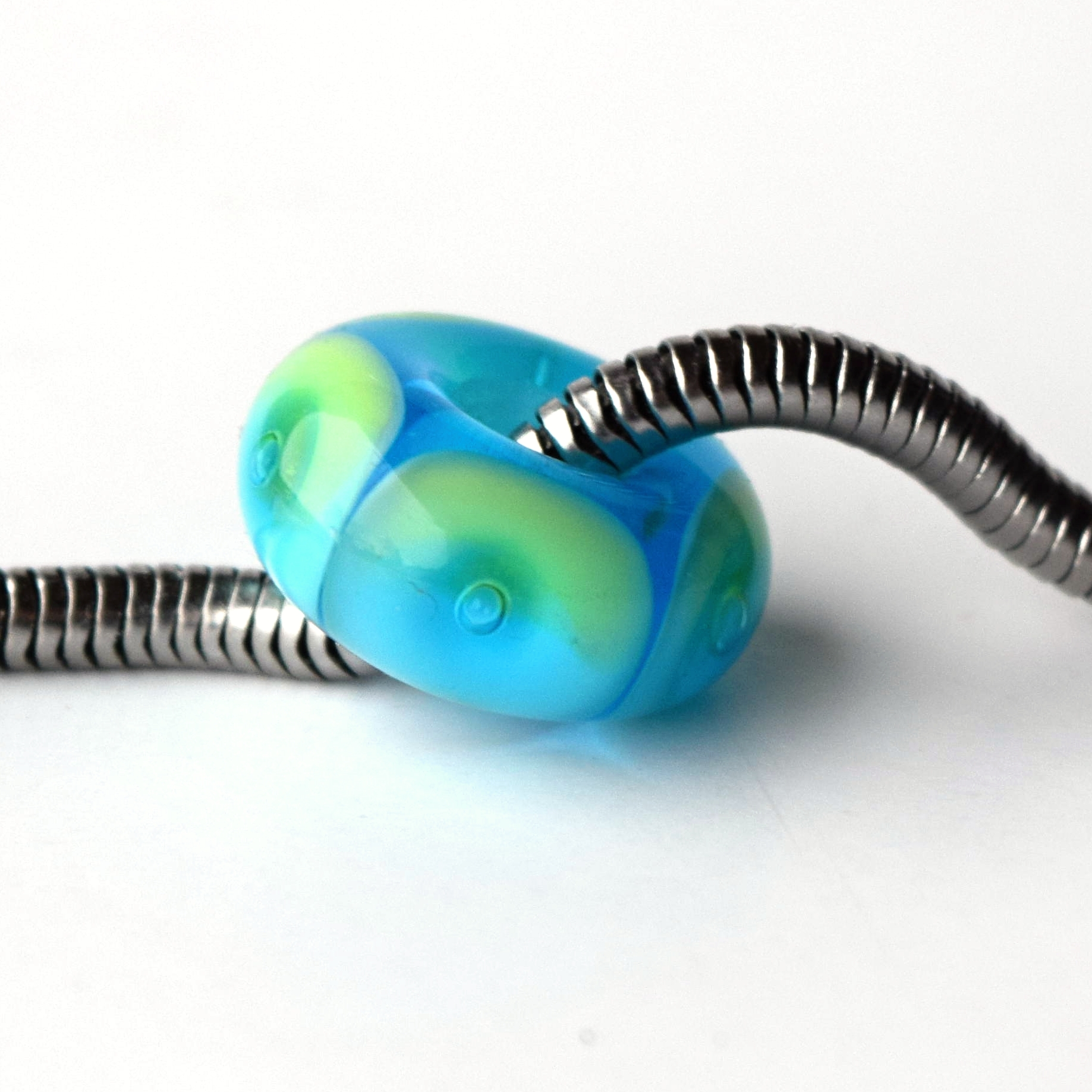 Autorská vinuté perle – barvy vody modrá a zelená ve studánkách s bublinkou.