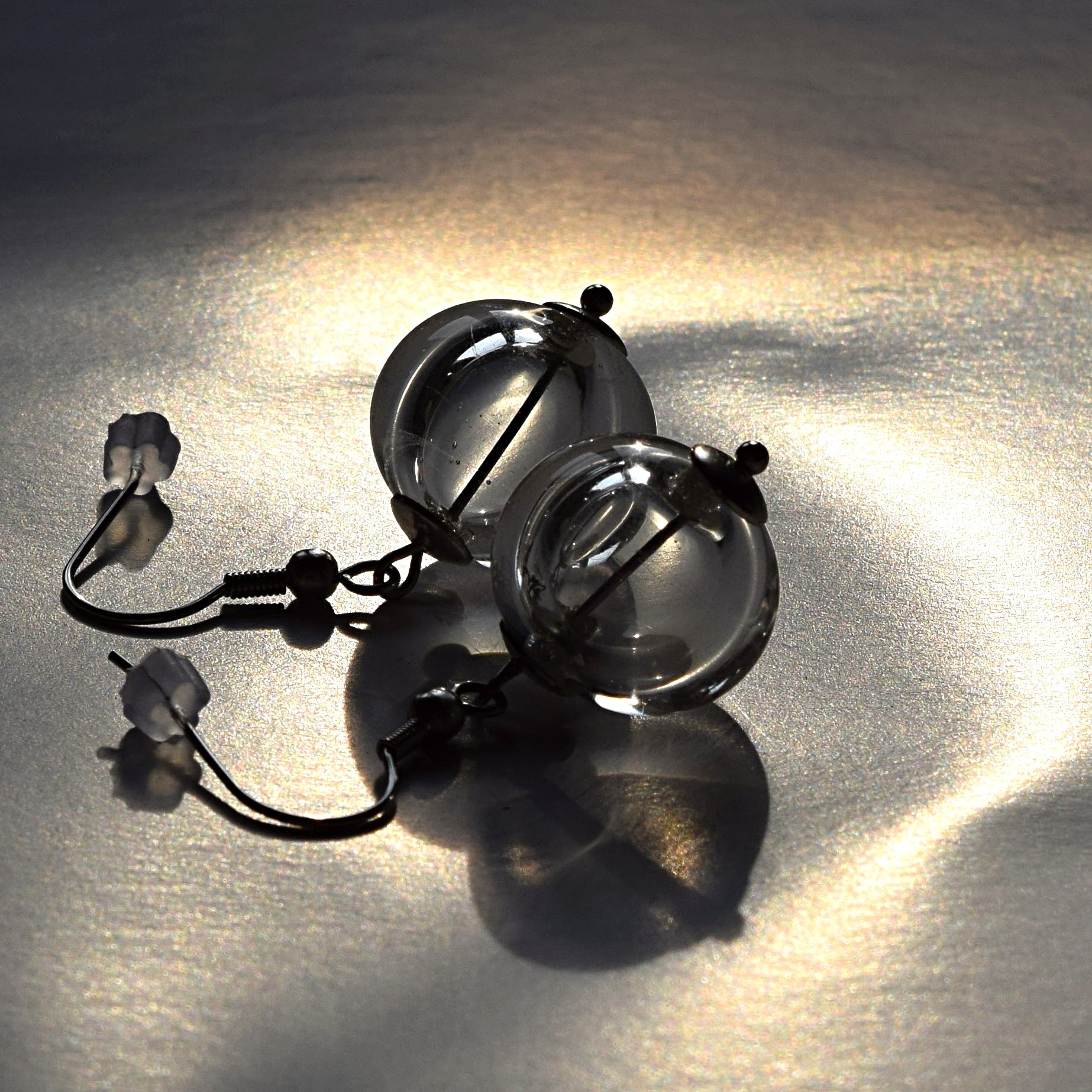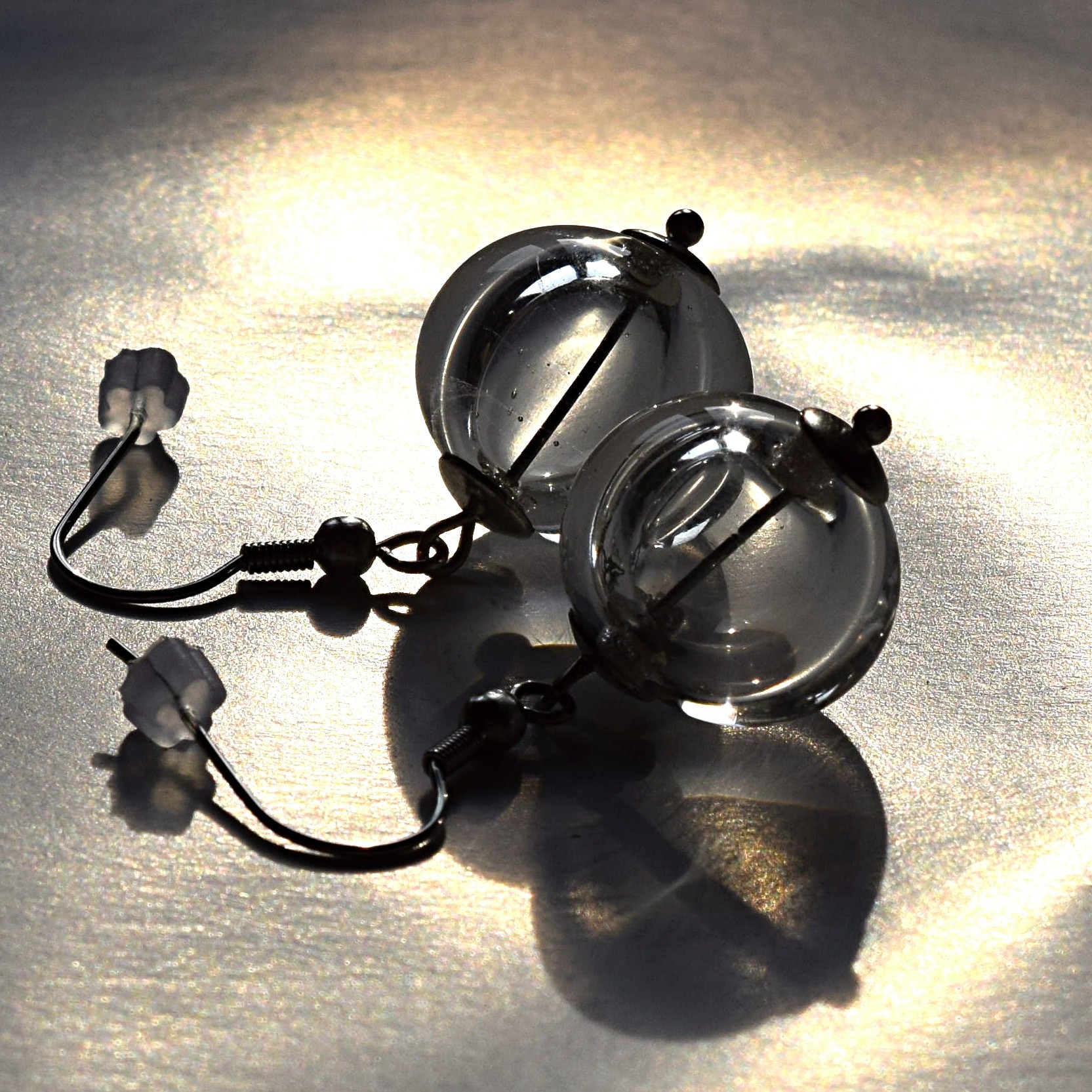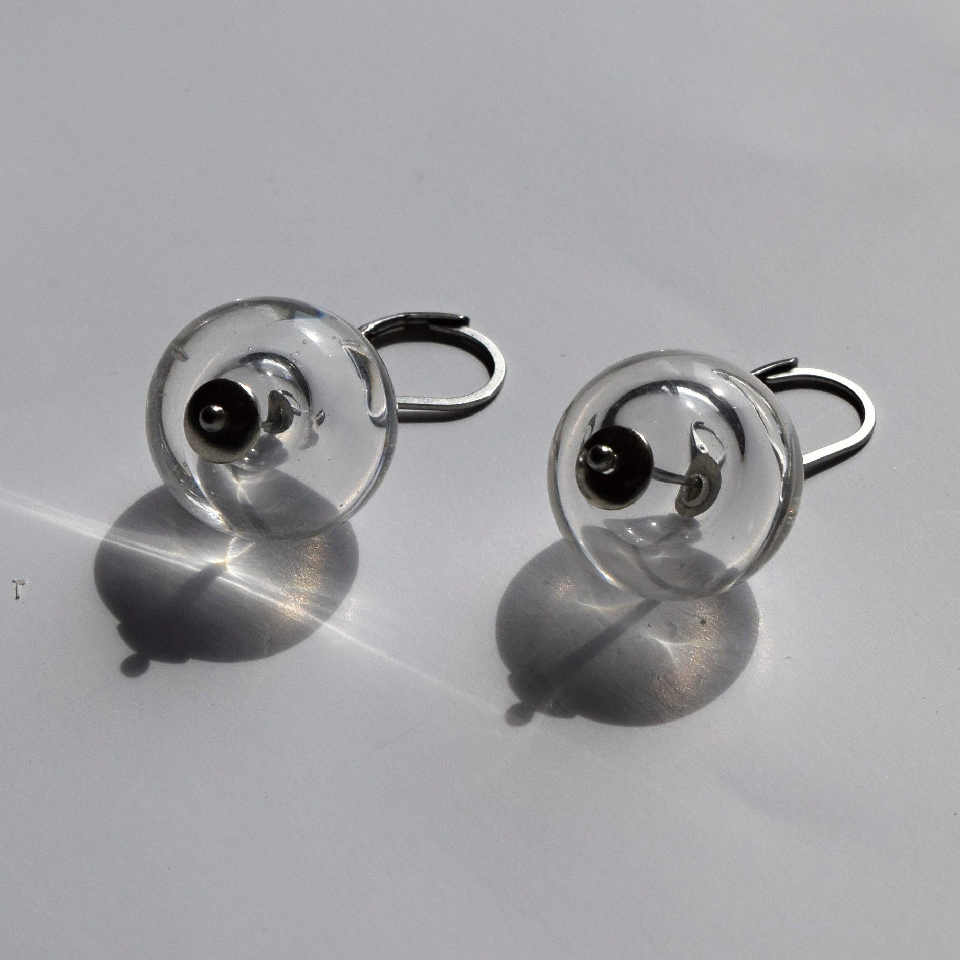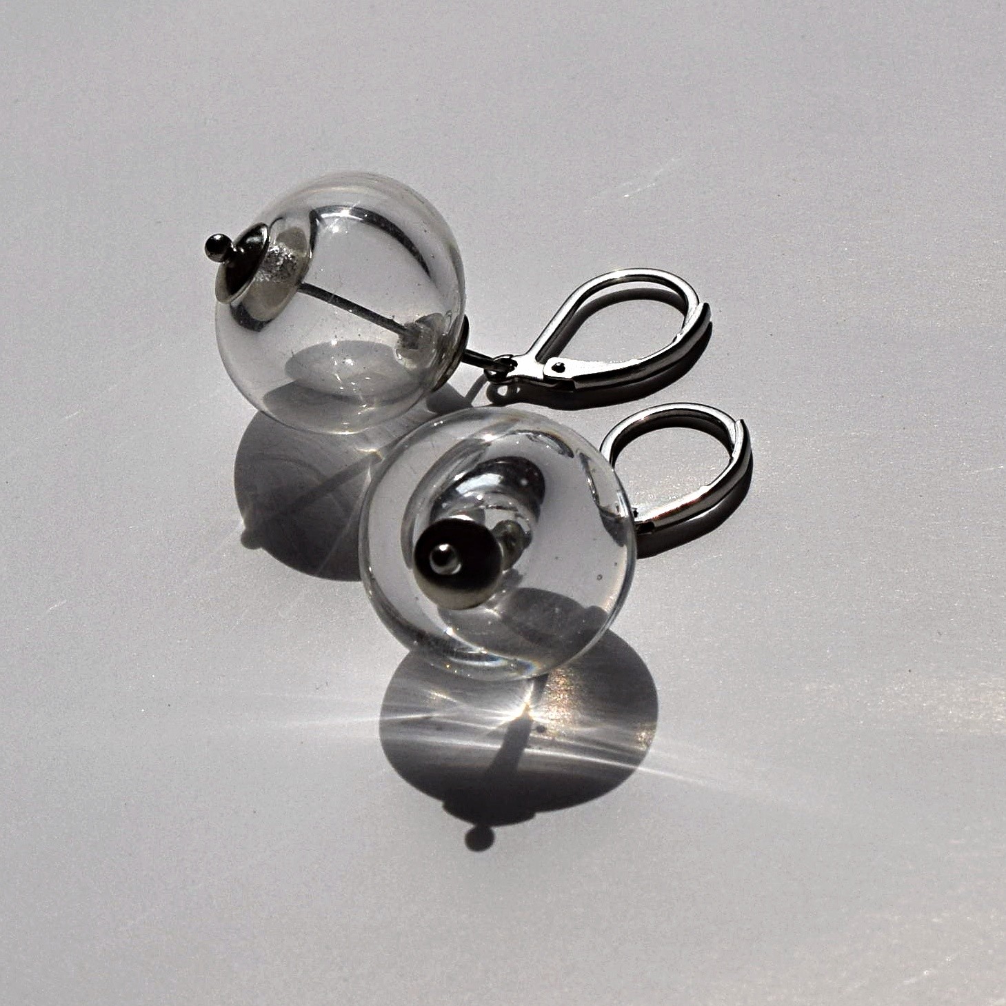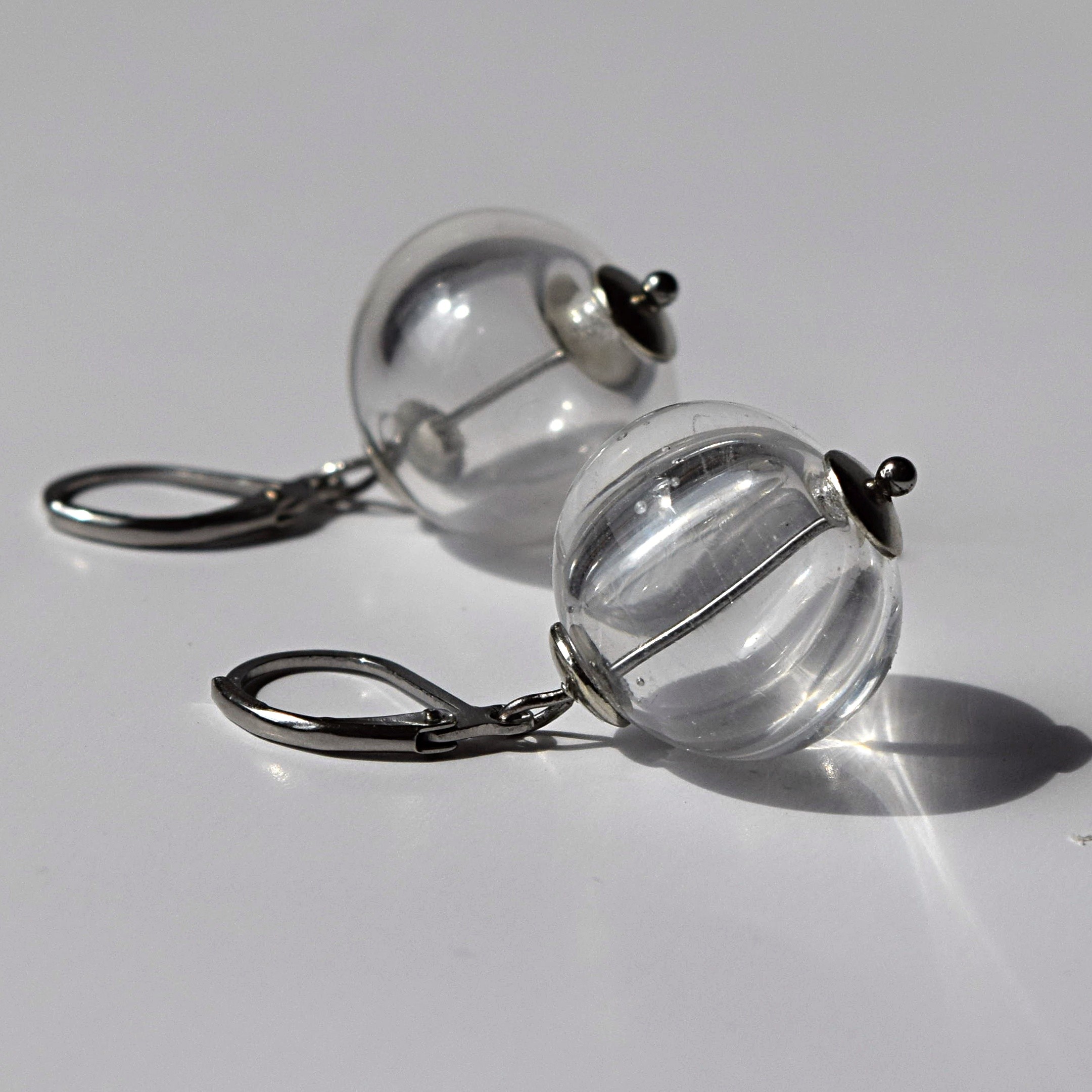 Minimalistické náušnice s čirými dutými perlemi.