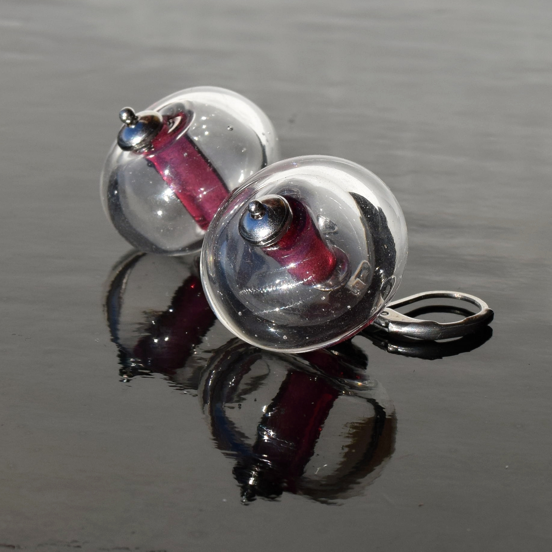 Náušnice se ručně vyrobenými dutými skleněnými perlemi se středem z fialového skla z řady bubbles. K náušnicím si můžete vybrat i náhrdelník, najdete ho zde: