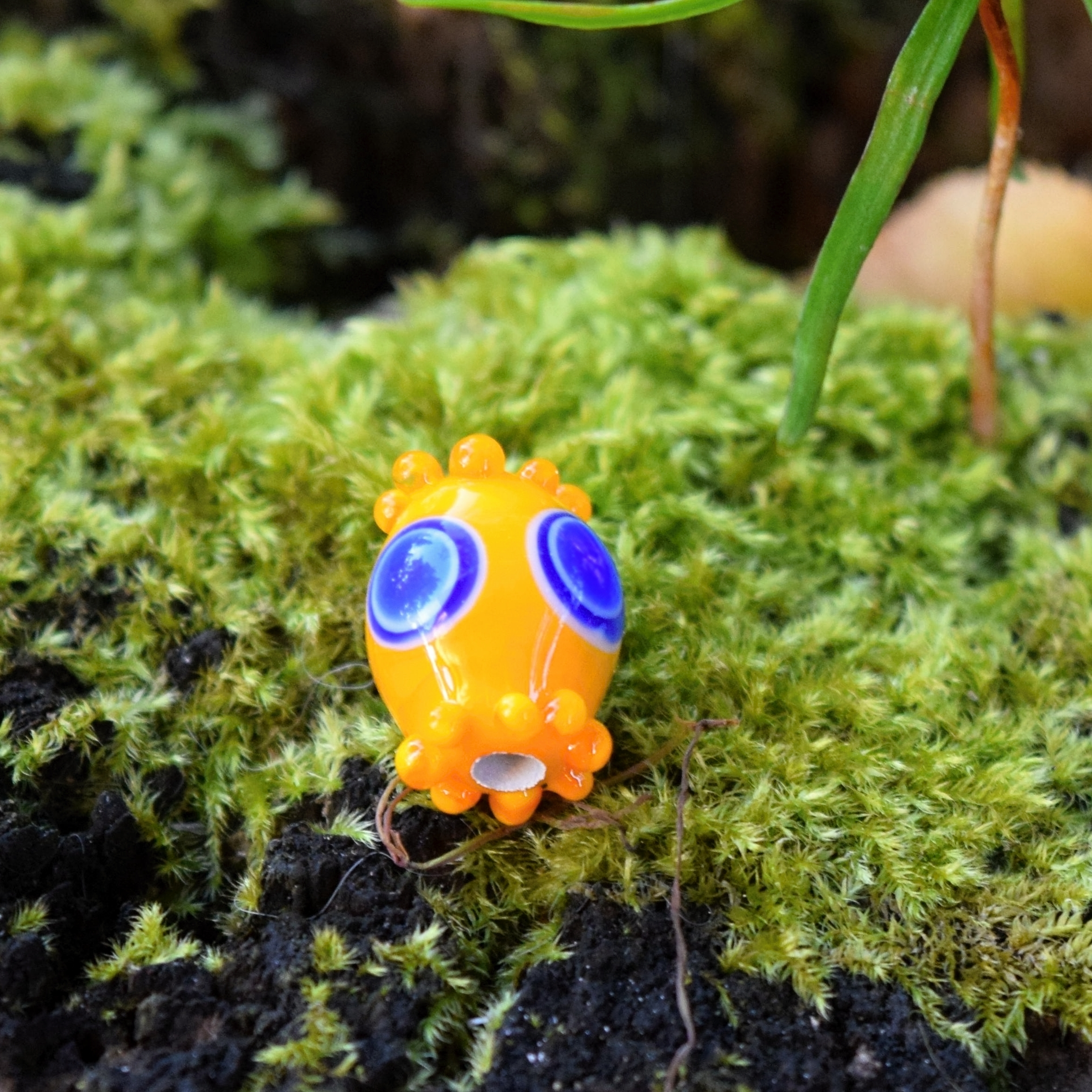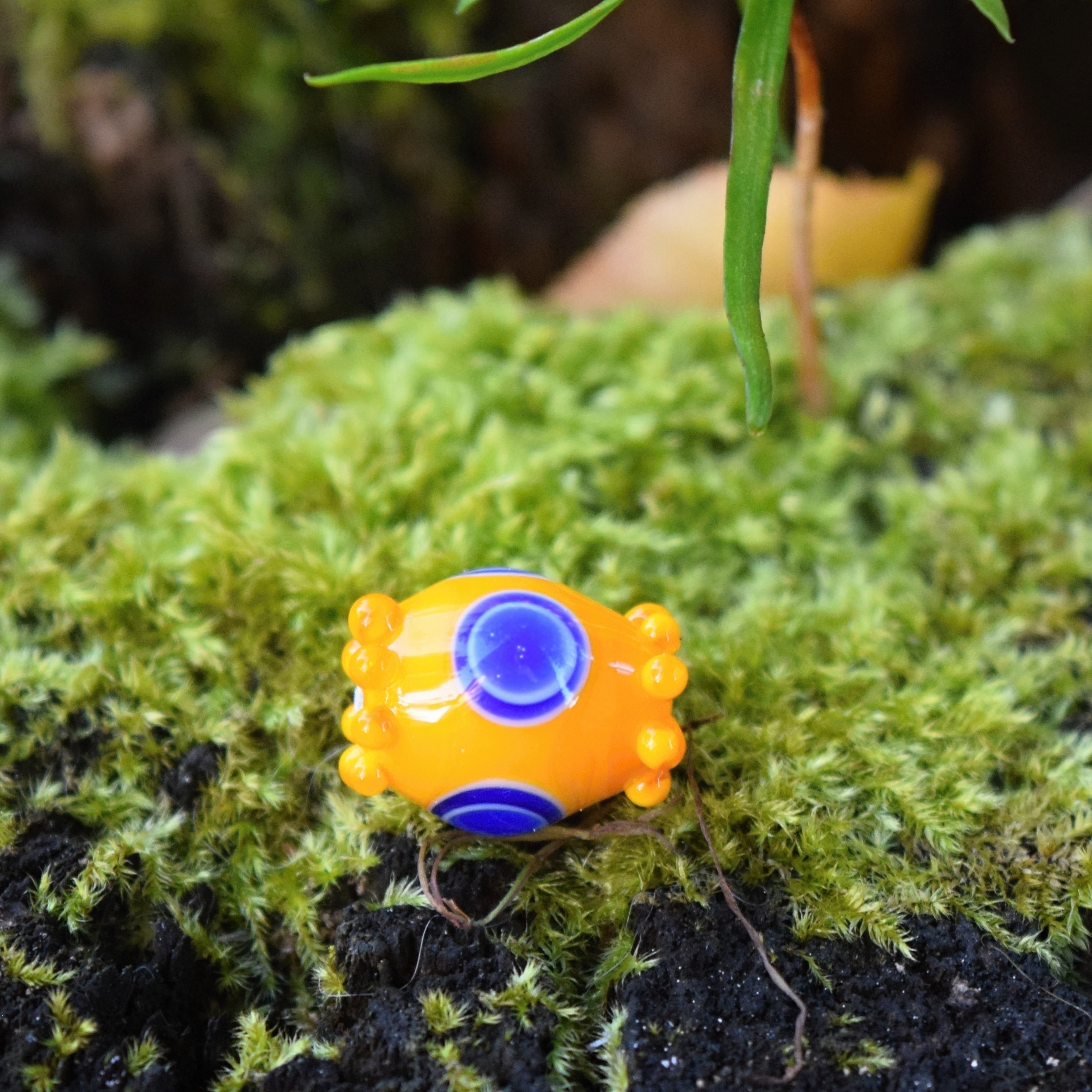 Volná replika keltského korálku s dvojitým očkem. Korálek je ručně vyrobený na sklářském kahanu starou technikou navíjení roztaveného skla na kovovou tyčku – podobně, jako vznikaly korálky v Halštatské době. Korálek je inspirovaný nálezem z Lochovic