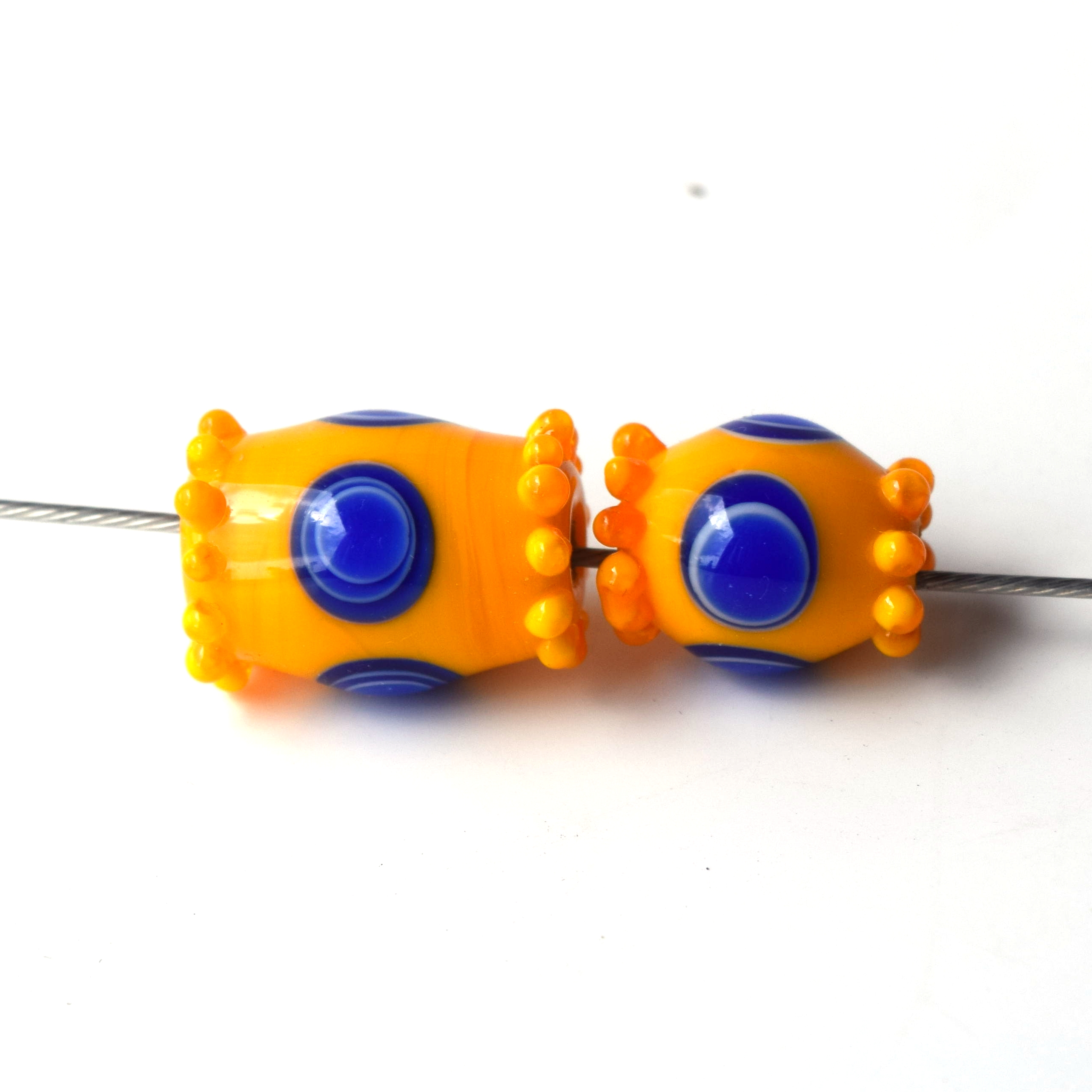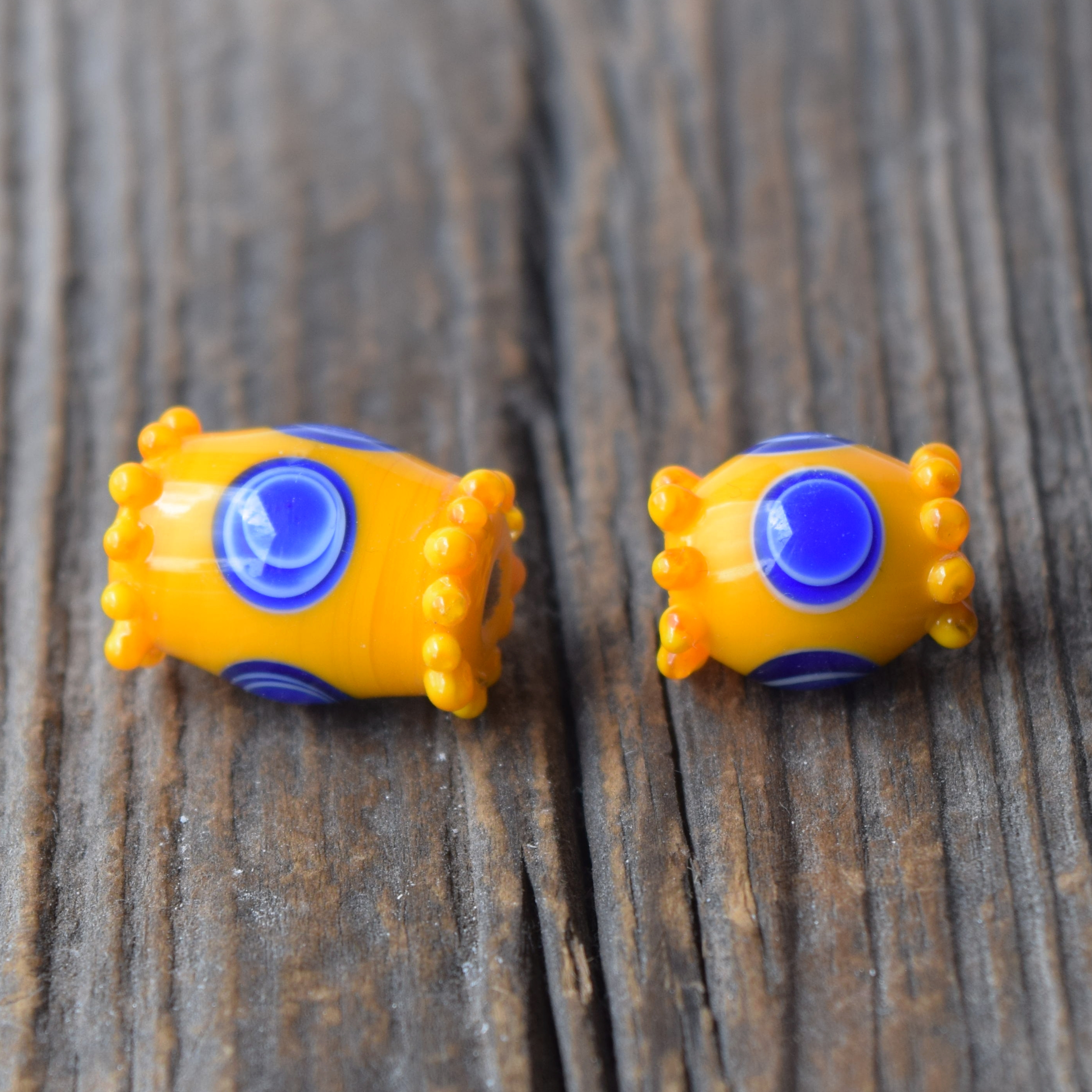 Volná replika keltského korálku s dvojitým očkem. Korálek je ručně vyrobený na sklářském kahanu starou technikou navíjení roztaveného skla na kovovou tyčku – podobně, jako vznikaly korálky v Halštatské době. Korálek je inspirovaný nálezem z Lochovic