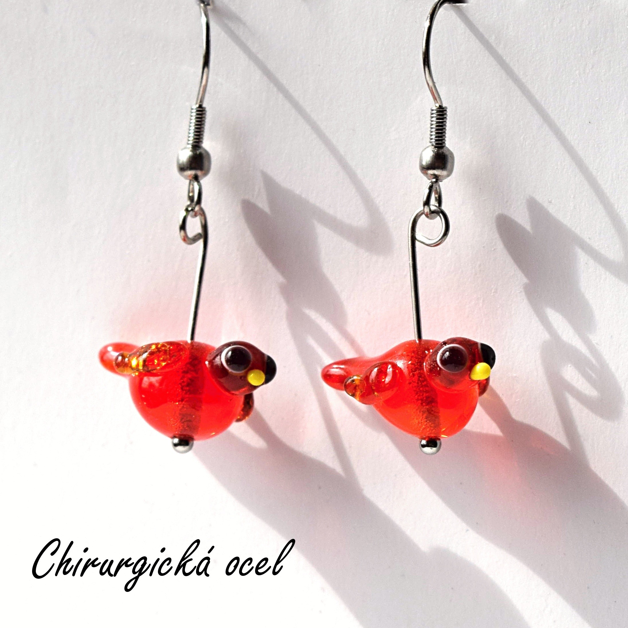 Náušnice s vinutými ptáčky z modrého a zeleného skla. Jednoduché a hravé.