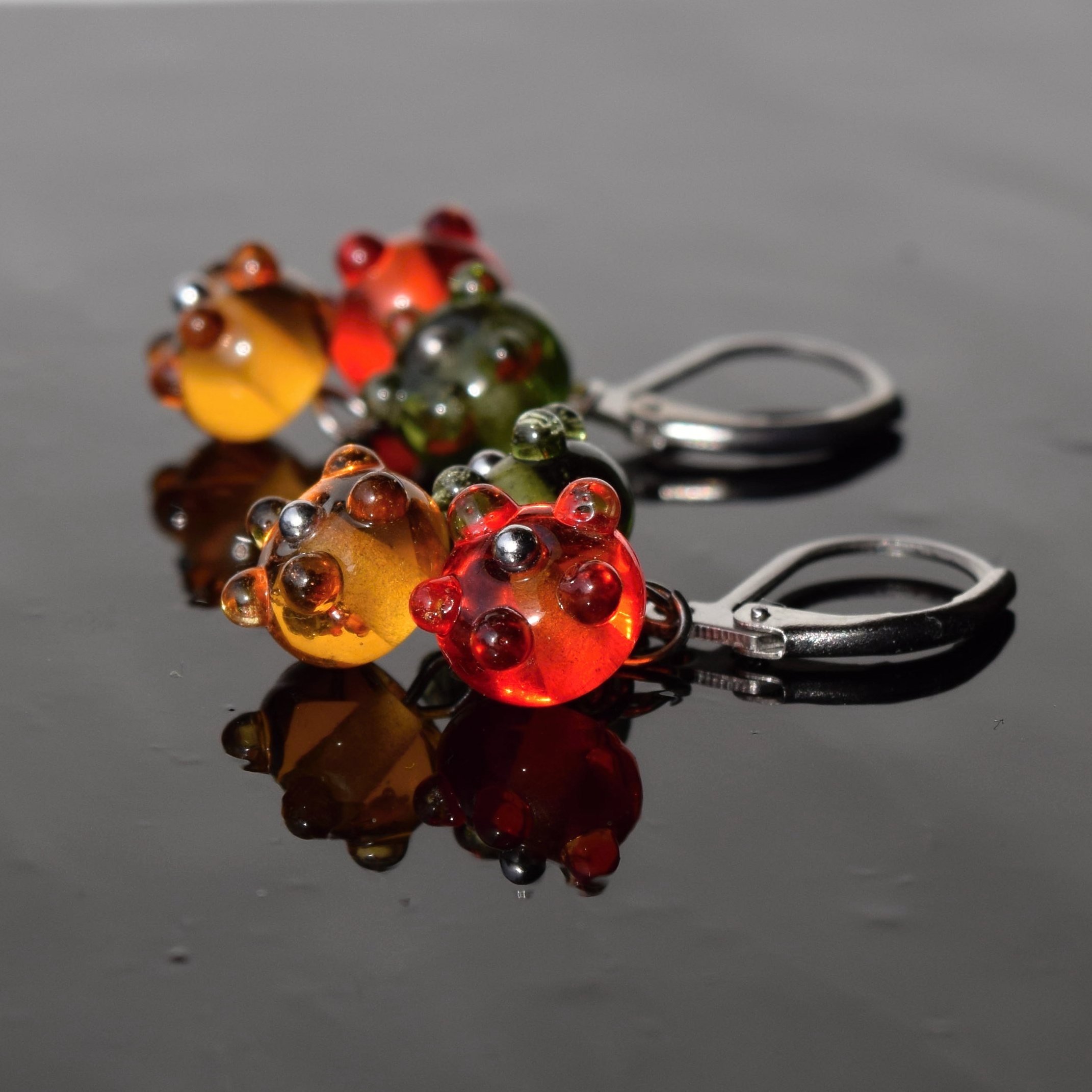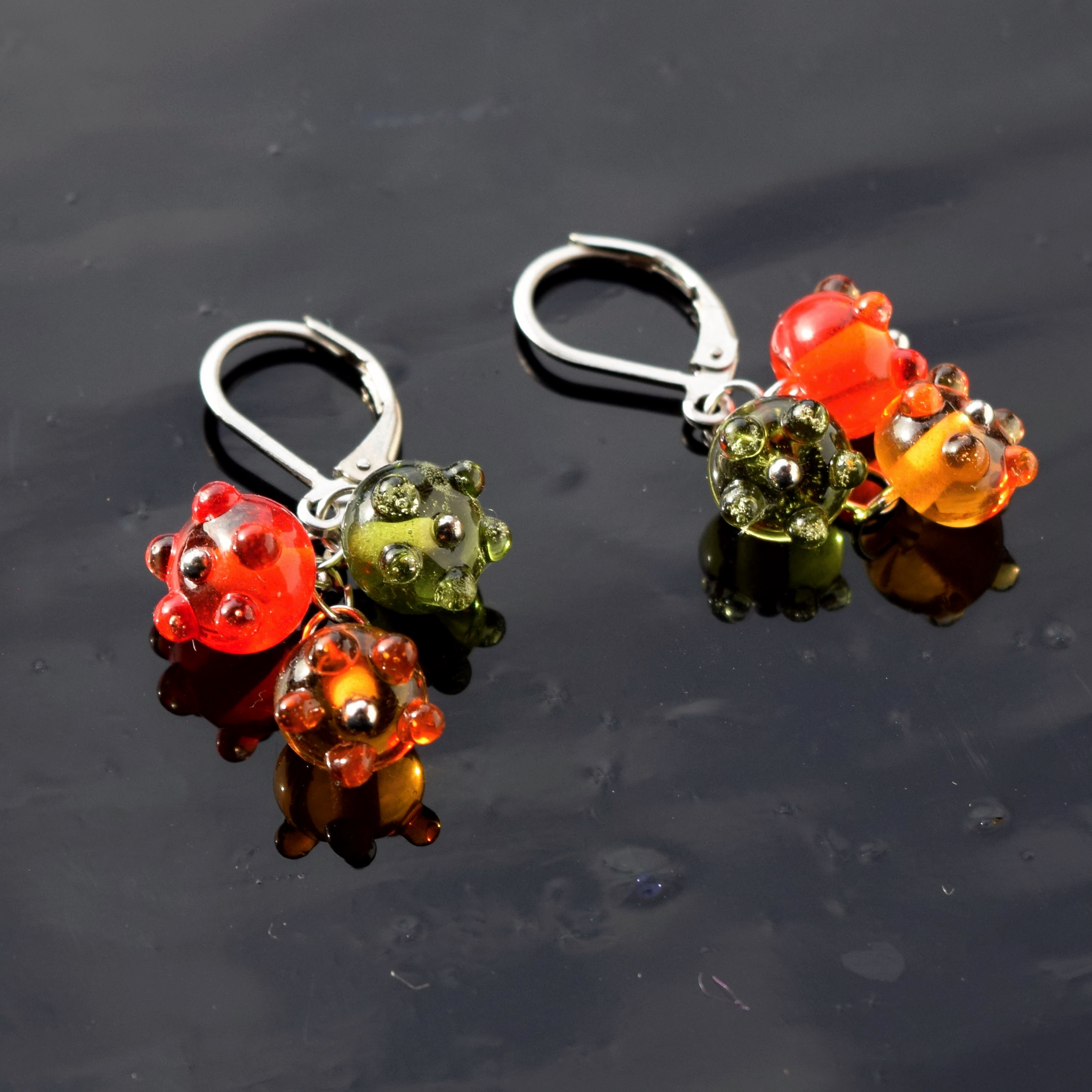 Náušnice s ručně vinutými perlemi. Zapínání je z chirurgické nerezové oceli – jsou tedy vhodné i pro alergiky. Délka náušnice se zapínáním francouzského typu je 3,1 cm