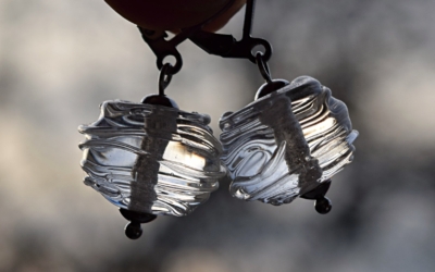 Náušnice z řady „Vortex“, malá, čirá tornáda. Náušnice z ručně vyrobených, skleněných vinutých perel z mé dílny. Náušnice mají bezpečnostní zapínání z chirurgické oceli. Délka včetně zapínání je cca 3,2cm, velikost vinutých korálků je cca 1 x 1,4 cm V nabídce mám i náhrdelník ze stejných vinutek, je na poslední doplňkové fotografii. Najdete ho zde … Pokračování textu Náušnice z čirých vinutých perel „Vortex“